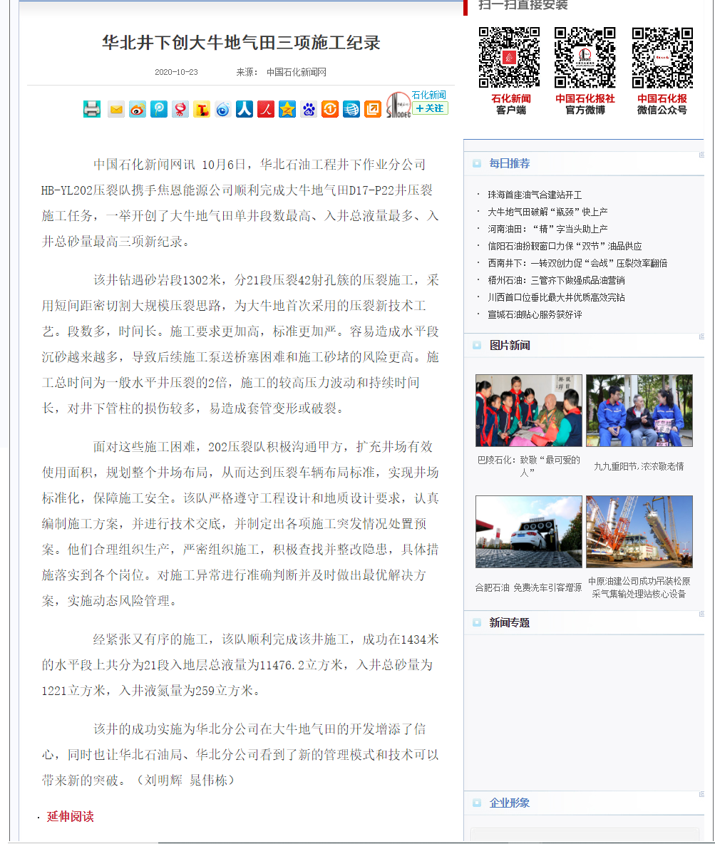 华北井下创大牛地气田三项施工纪录